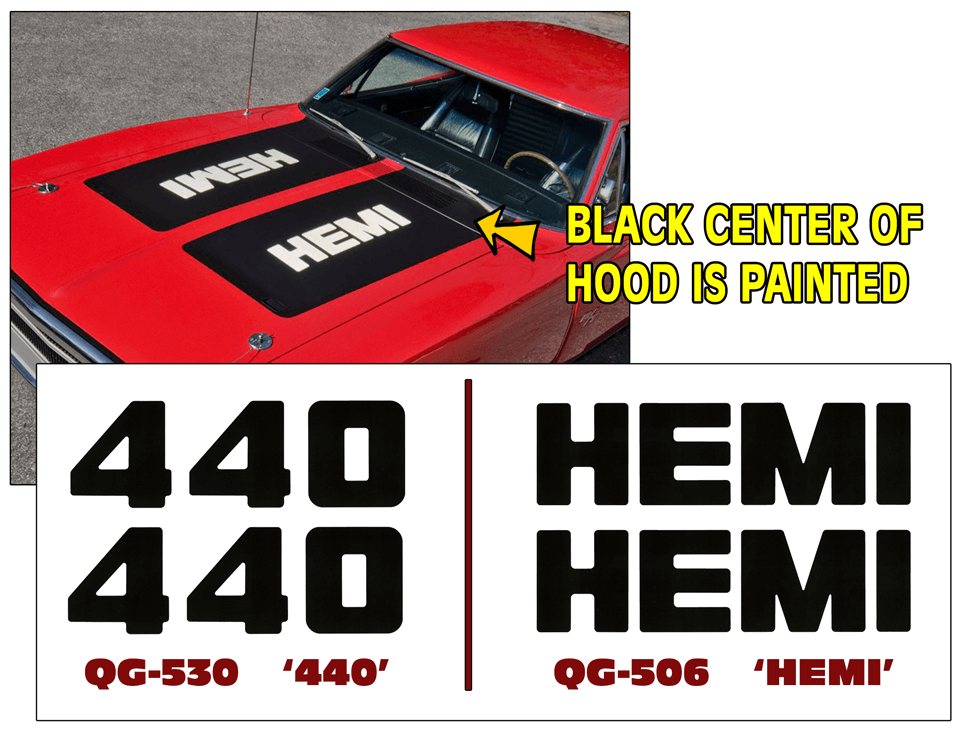 Enhance your 1970 Dodge Charger with this authentic HEMI or 440 Hood Decal Set, designed to perfectly fit both sides of the hood. Each set includes two high-quality decals measuring 6 inches tall by 19 inches long, showcasing the iconic HEMI or 440 name. Please note, these decals do not include the black stripes found in the hood indentations, as those areas are painted directly on the vehicle. This set offers a precise and stylish way to restore or customize your Charger’s appearance with a classic touch.