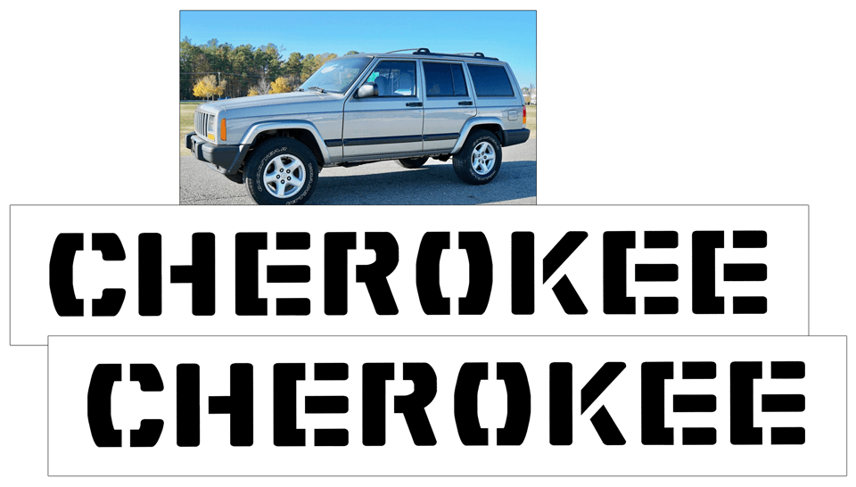 Enhance your 1984-2001 Jeep Cherokee XJ with these meticulously crafted CHEROKEE Fender Decals in a refined stencil type style. This set includes two decals, each measuring 2.5 inches tall by 21.5 inches long, designed to fit perfectly on both sides of your vehicle. Crafted for durability and style, these decals offer a subtle yet distinguished upgrade that complements the classic lines of your Jeep, adding a touch of sophistication and personalized flair to your ride. Ideal for enthusiasts seeking to maintain authenticity while elevating their vehicle’s appearance.