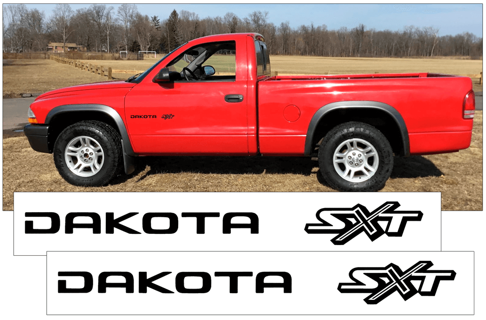 Enhance your 2001-02 Dodge Dakota SXT with this meticulously crafted door decal set, designed to perfectly fit both sides of your vehicle. Measuring 2 inches tall by 18.5 inches long, these decals offer a sleek and refined accent that complements your truck’s distinctive style. Made with durable materials, they ensure lasting vibrancy and resistance to the elements, providing a sophisticated upgrade that stands out without overwhelming your vehicle’s design. Ideal for owners seeking a subtle yet elegant way to personalize their Dodge Dakota SXT.