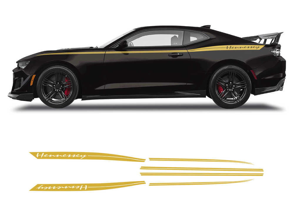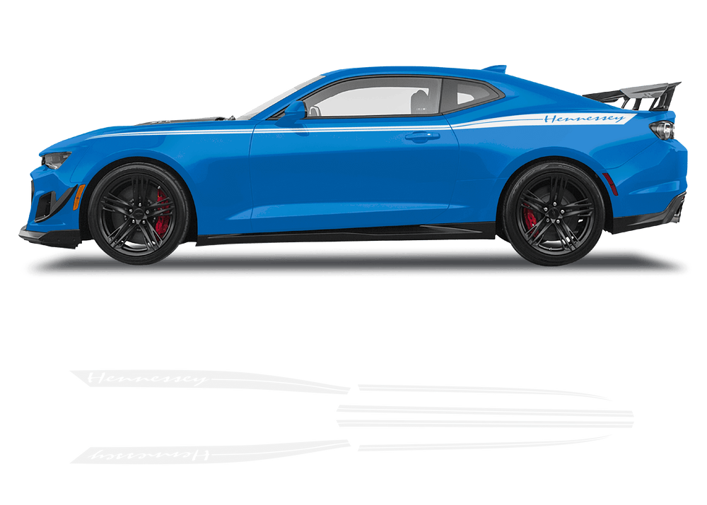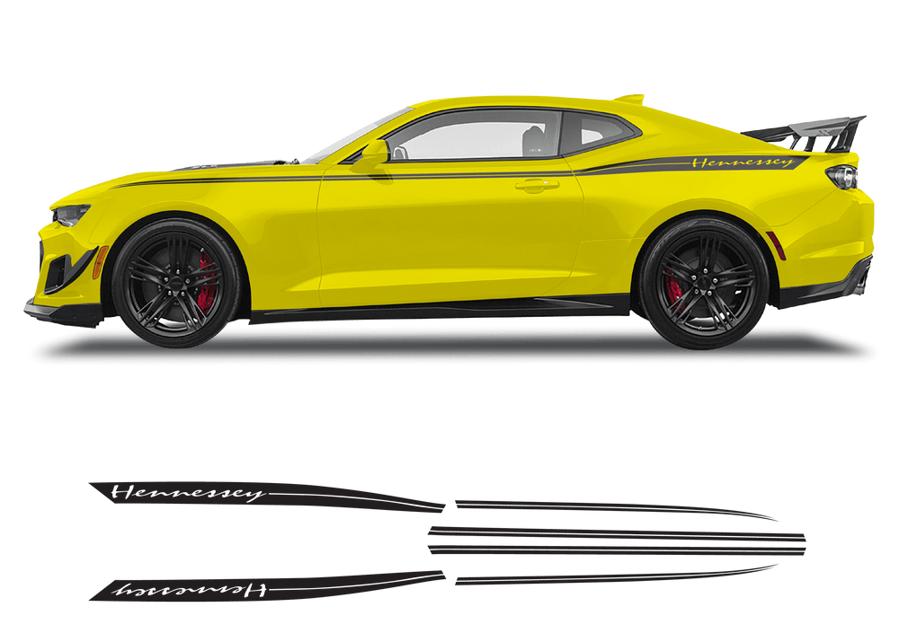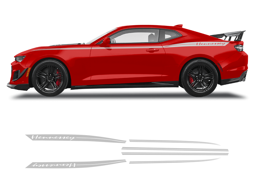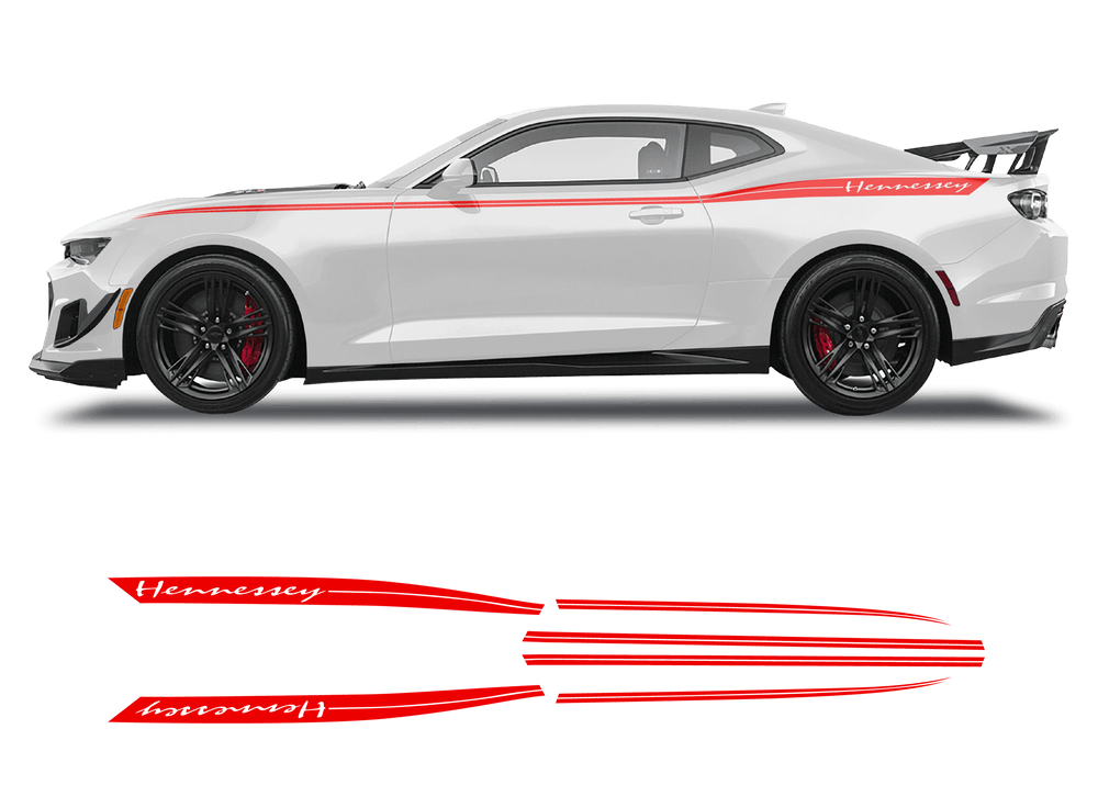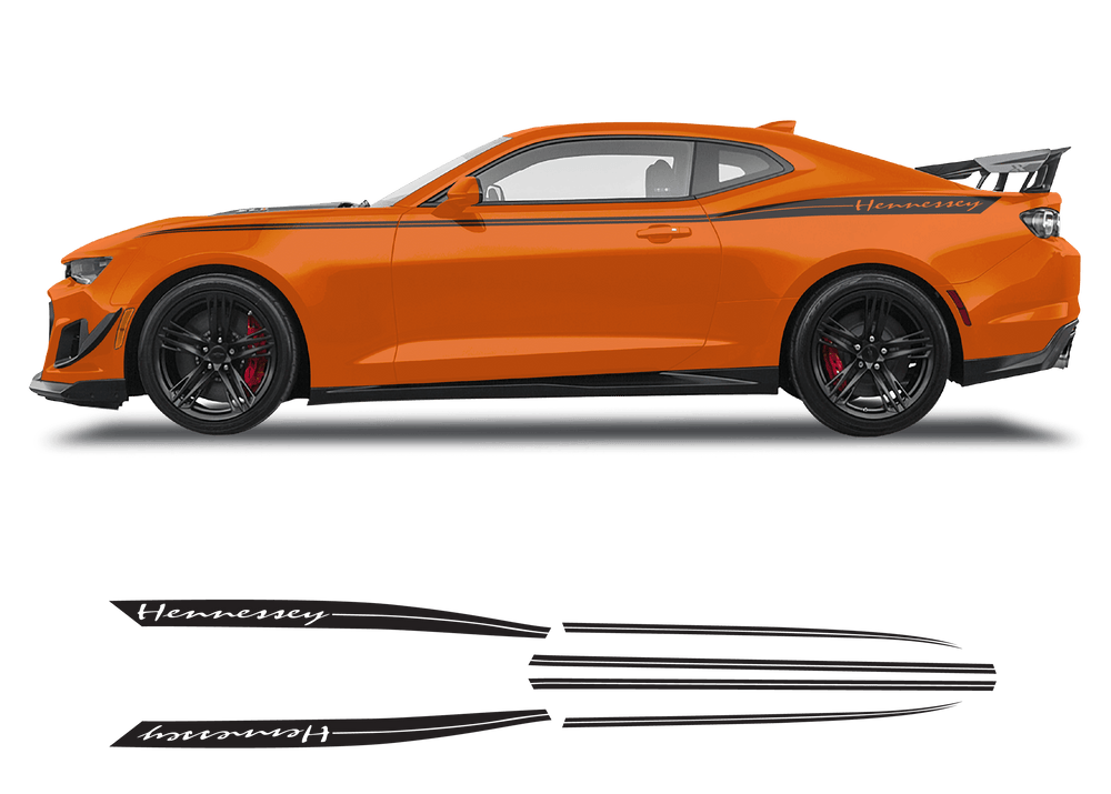 Enhance your Chevrolet Camaro with these premium Hennessey Stripes, designed to deliver a sleek and sophisticated look. The set includes two precisely cut stickers, each equipped with transfer tape to ensure a smooth and effortless installation process. Crafted from high-quality vinyl, these graphics offer exceptional durability, maintaining their vibrant appearance for 5 to 7 years. Perfect for Camaro enthusiasts seeking to elevate their vehicle’s style with a refined and lasting finish.