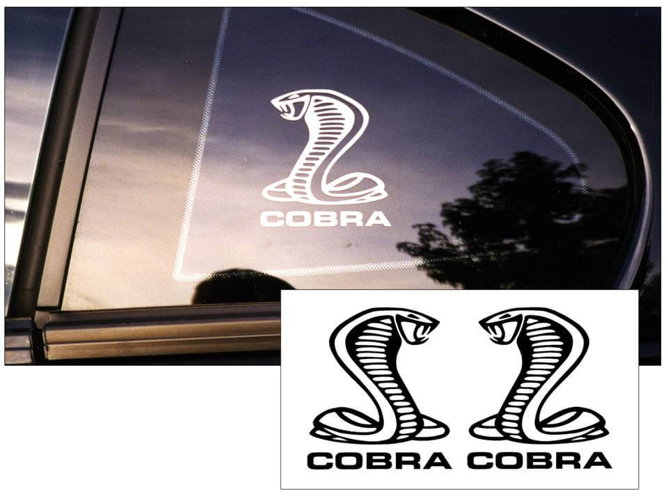 Elevate your vehicle’s style with the Cobra Snake Decal Set, featuring the iconic cobra design accompanied by the "Cobra" name beneath. Each decal measures 4 inches tall by 3.6 inches long, perfectly sized to fit on front fenders or sail windows. Designed to face forward on both sides of your car, these decals create a striking, symmetrical look that commands attention. Crafted for durability and visual impact, this set of two decals offers a refined way to showcase your passion for performance and detail. Ideal for enthusiasts seeking a subtle yet powerful statement.