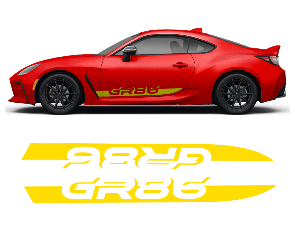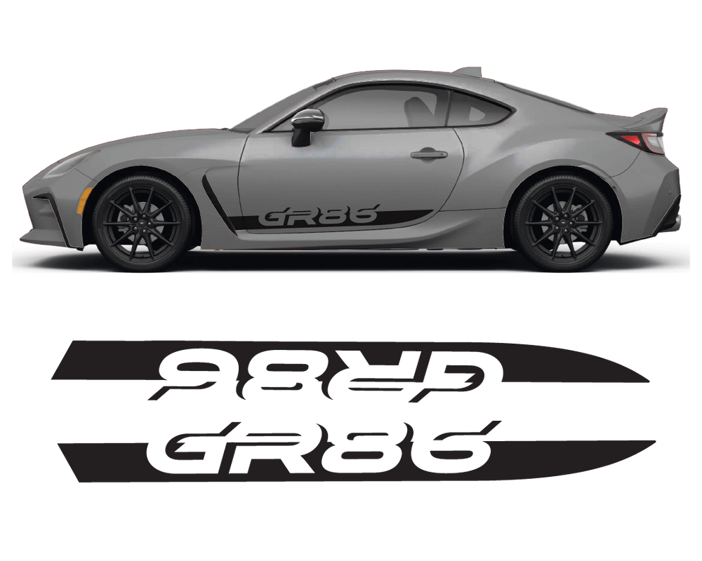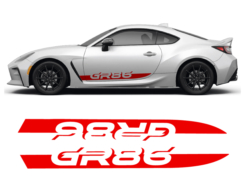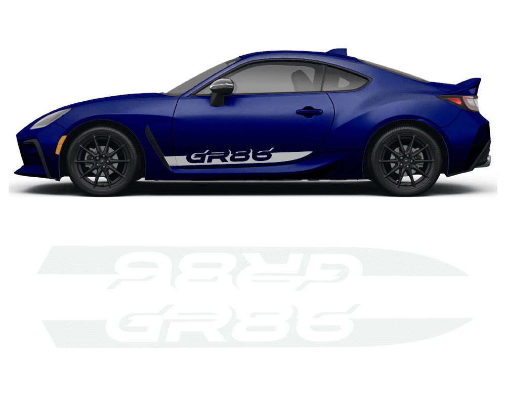 The GR86 Side Graphics Set features two precisely crafted stickers equipped with transfer tape for effortless application. Produced using premium vinyl, these graphics offer durability lasting between 5 to 7 years.