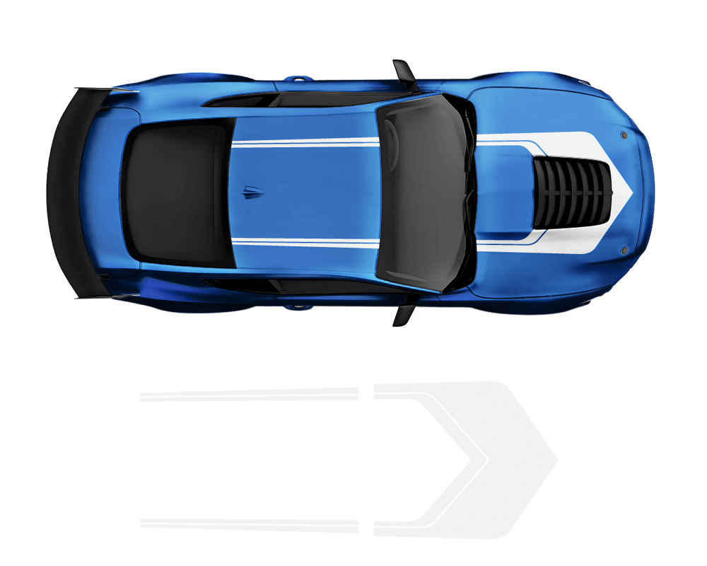 This two-piece two-tone graphic for the Ford Mustang roof and hood is designed for 2016 to 2022 models. Crafted from premium vinyl, the decals come ready with transfer tape for straightforward application and boast a durability of 5 to 7 years.