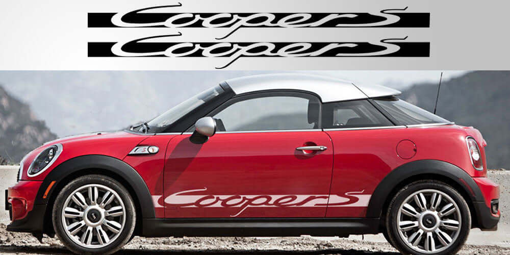 Enhance your Mini Cooper S with this elegant pair of vinyl decal graphics, inspired by classic Porsche script design. Crafted from premium vinyl, these decals offer durability and a refined finish that complements your vehicle’s sleek lines. Measuring 68 inches in length, each decal includes generous trim on both ends, ensuring a perfect fit across the full range of modern Mini Cooper models. This sophisticated addition not only elevates your car’s aesthetic but also reflects your appreciation for timeless automotive style.