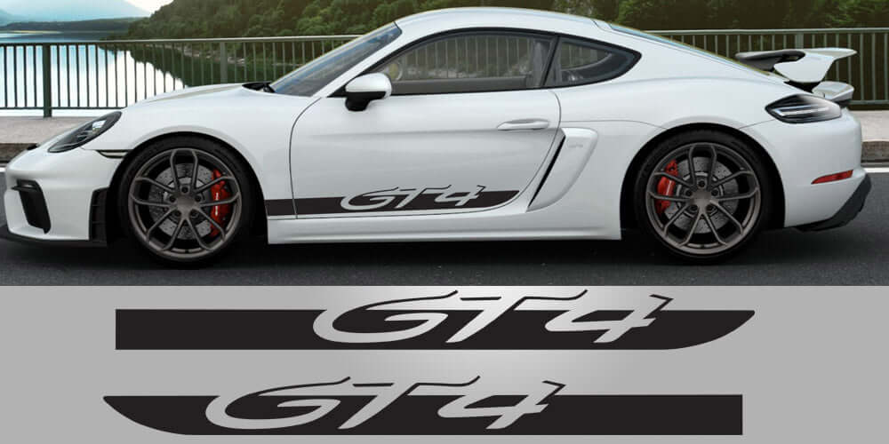 Elevate your Porsche Cayman 718 GT4 with this premium side scripts decal graphic kit. Crafted for enthusiasts who demand authenticity and precision, these decals capture the iconic GT4 badging with meticulous detail. Easy to apply and engineered for durability, they enhance your vehicle's aggressive stance while maintaining its refined aesthetic. Transform your sports car into a true track-ready masterpiece that commands attention on every road.