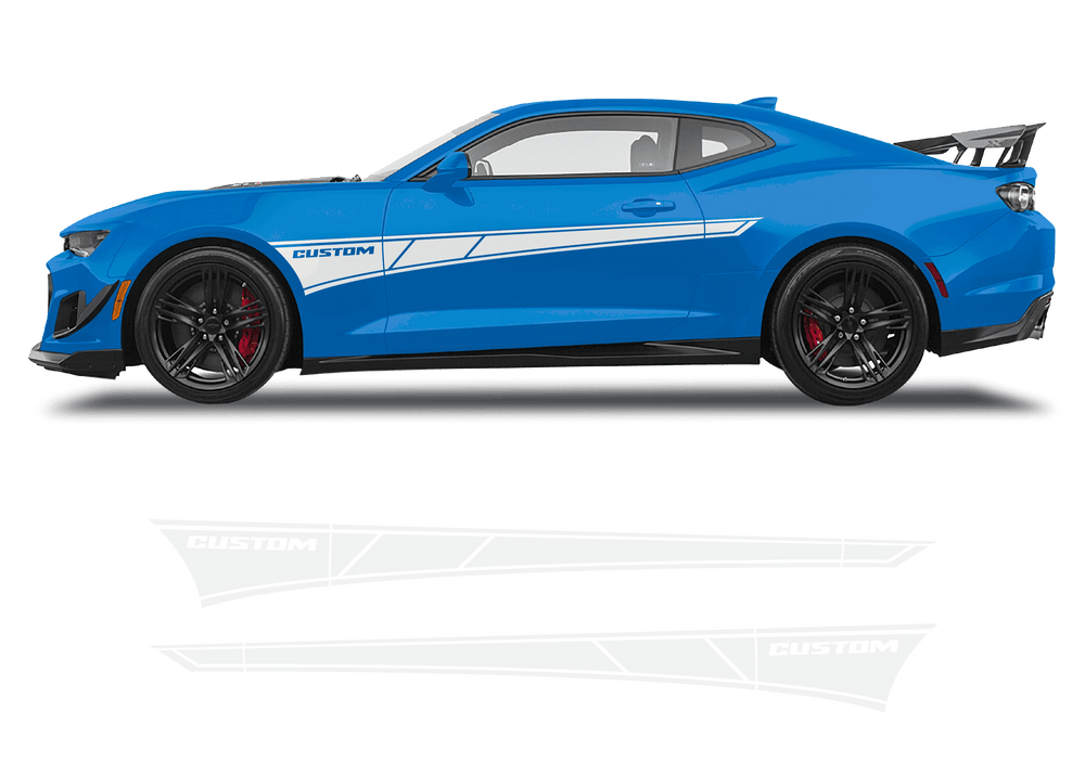 Enhance your Chevrolet Camaro's appearance with this Side Custom Graphics Stripe Set, designed to add a sleek and personalized touch. The set includes two precisely cut stickers, each equipped with transfer tape to ensure a smooth and accurate installation process. Crafted from high-quality vinyl, these graphics offer exceptional durability, maintaining their vibrant look for 5 to 7 years under various weather conditions. This upgrade not only elevates your vehicle’s style but also reflects your attention to detail and passion for automotive excellence.