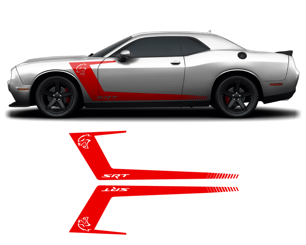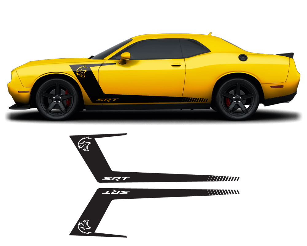 Designed for Dodge Challenger models from 2011 to 2022, these side graphics come as a set of two pieces. Crafted from premium vinyl and accompanied by transfer tape, they ensure a seamless and precise application. Engineered for longevity, these decals offer durability spanning 5 to 7 years.
