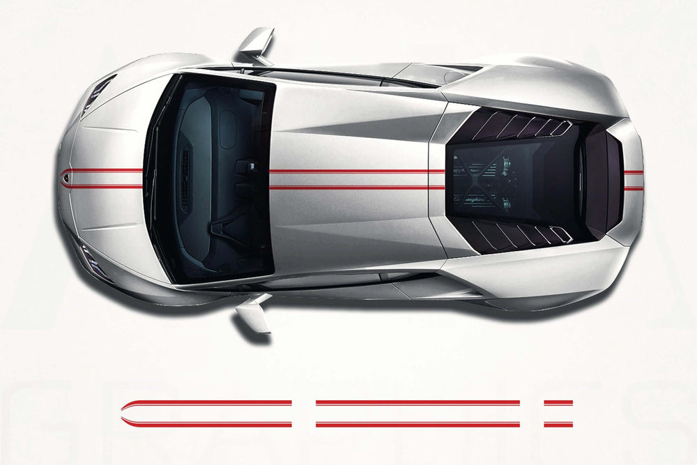 Elevate your Lamborghini Huracan's visual impact with our Center Stripes Decals. It’s more than just an upgrade; it’s an opportunity to express yourself and celebrate your love for high-performance vehicles. Experience the thrill of standing out from the crowd and give your Huracan the distinctive look it deserves. Order now and let your Lamborghini’s true colors shine!