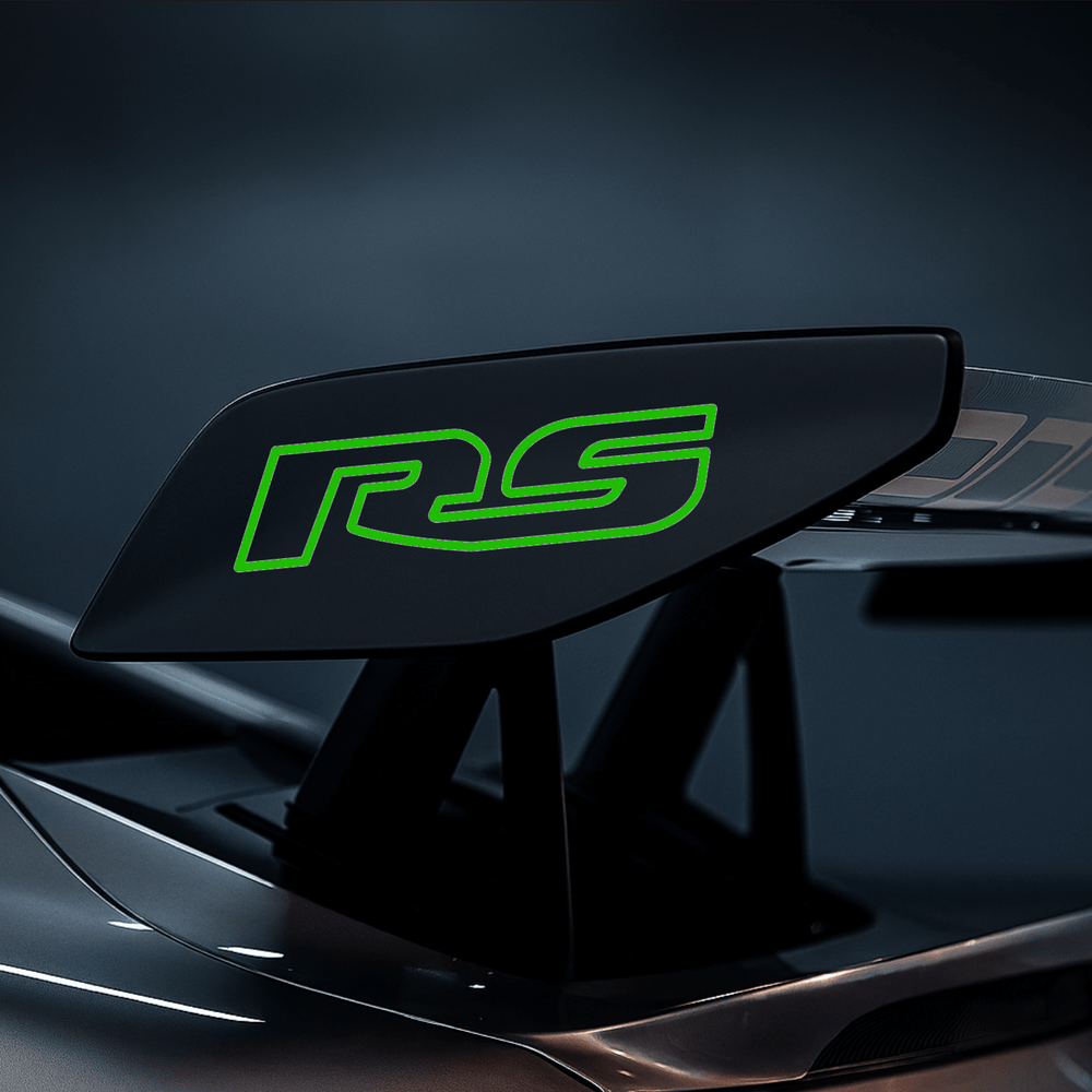 ✅ Precision-cut "RS" logo in high-gloss or matte white vinyl