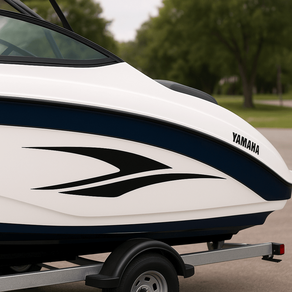 Upgrade your Yamaha Jet Boat with a sleek, aerodynamic side stripe decal kit — precision cut from premium matte black vinyl. Designed to follow the natural curves of Yamaha models like the AR190, SX210, and 212X, this kit gives your boat a bold, customized look without the hassle of paint.